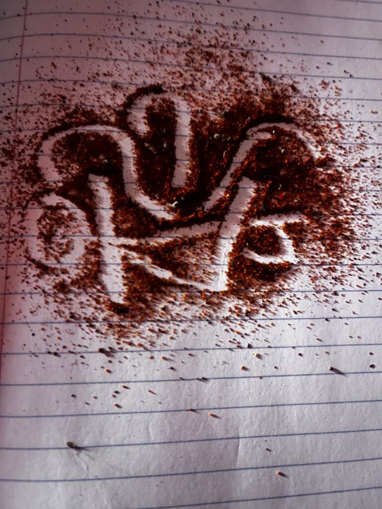 I set the bowl with vervain for love magic (gotta enchant) and centaury (gotta make them believe you can enchant) and lit the candle. I also set the paper with cayenne pepper and black pepper and drew the Hellebore sigil (gotta banish and remain invisible to enemies). I wrote four things I’d like to banish. I drew the sigil with black smoky quartz then ripped each item with forethought. I burned each one to ash then moved the smoky quartz in smoke and put it in pocket. I took the ashes and dropped them at a crossroads.