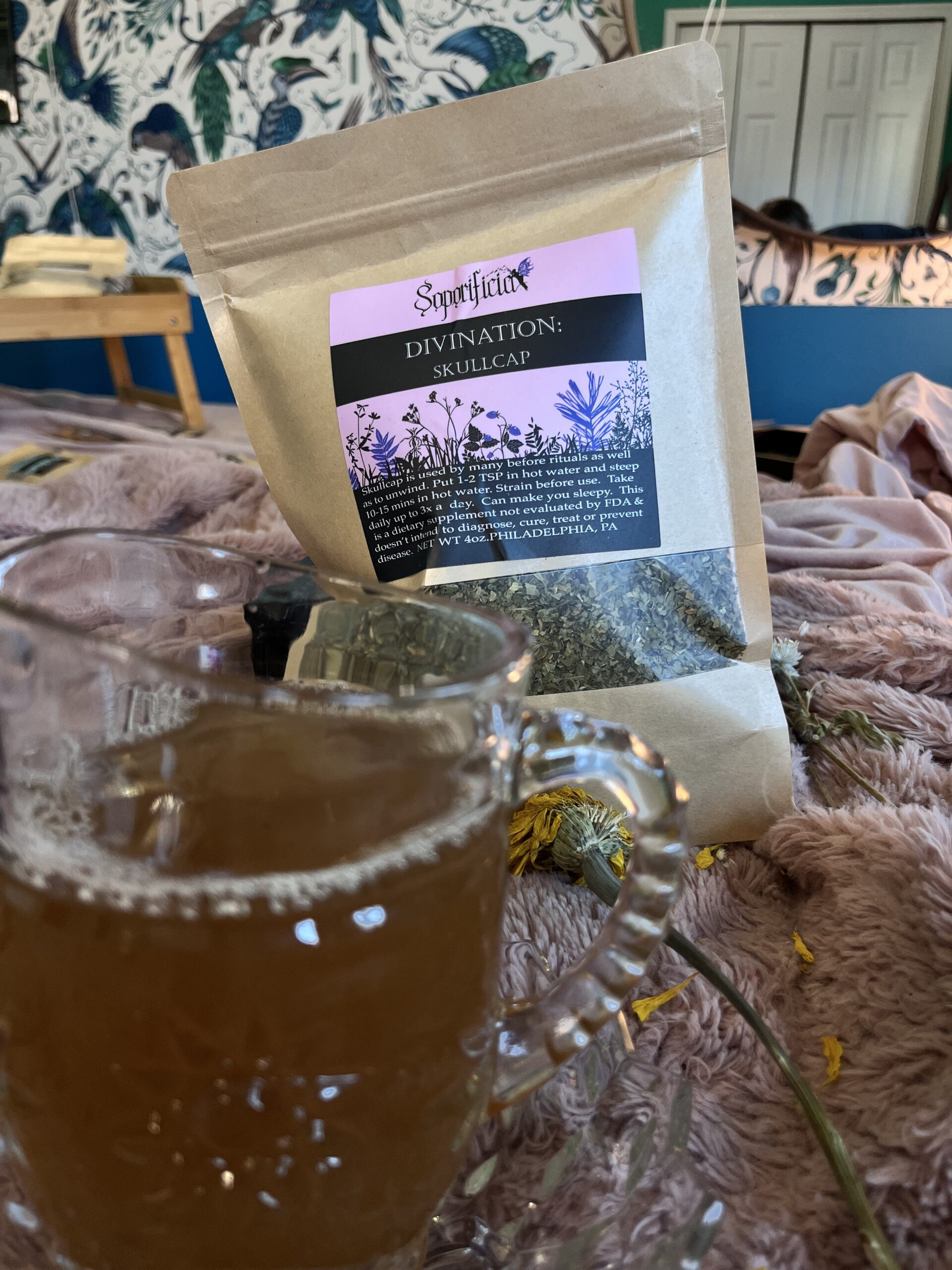 Skullcap tea. Good for anxiety, decision making and divination. Some use it before asking big questions.